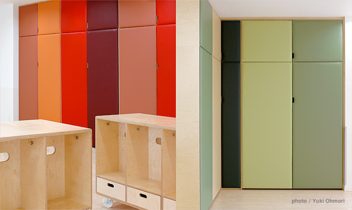 photo by Yuki Ohmori titleYPPdate2009design藤森泰司アトリエarchitect鹿島建設contentsふとん収納,子供用洗面台,屋外ベンチ,等の製作設置detail >> linkX -