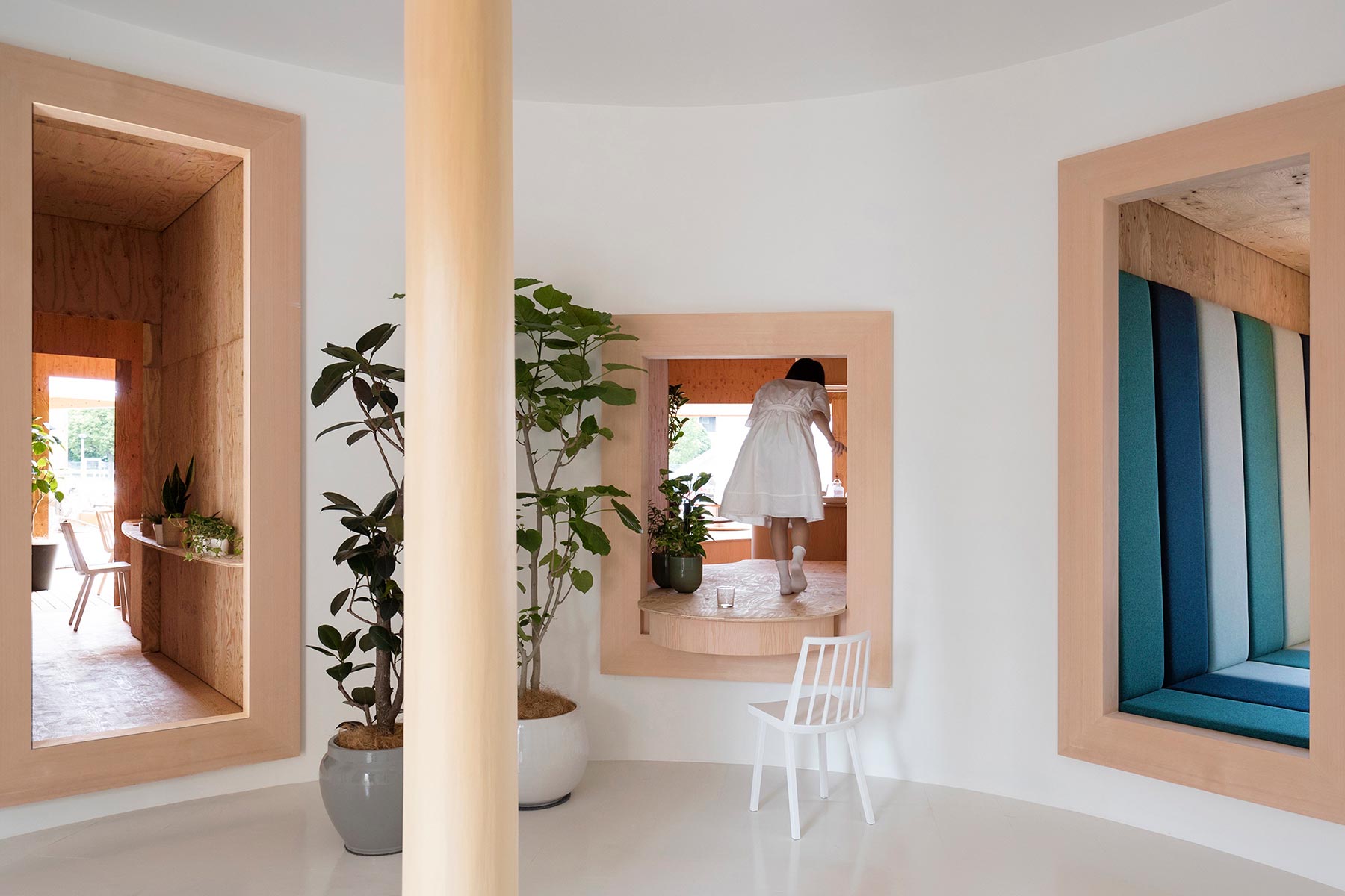 photo by Kai NAKAMURA titleアルベロベッロdate2022design大西麻貴+百田有希 / o+hcontentsテーブル、収納、ソファなどの製作設置detail >> linkX -