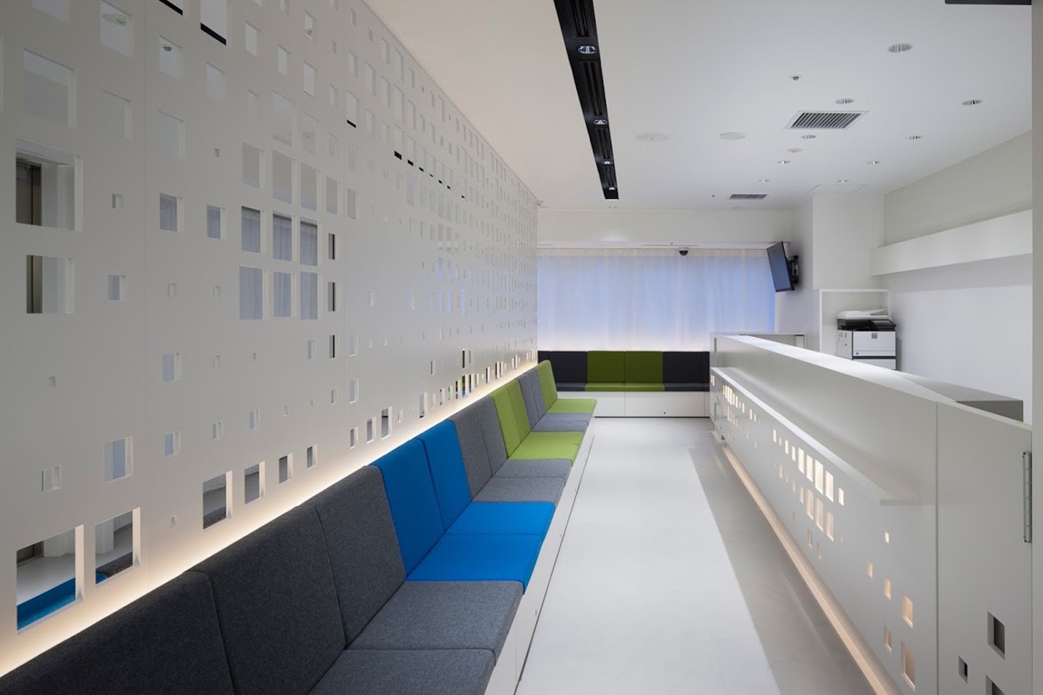 photo by 上田宏 titleG Clinic 8fdate2010design錦織真也建築設計事務所+有本優史郎建築設計事務所contentsラウンジの造作 カウンター,ベンチ,建具,等の製作設置detail >> linkX -