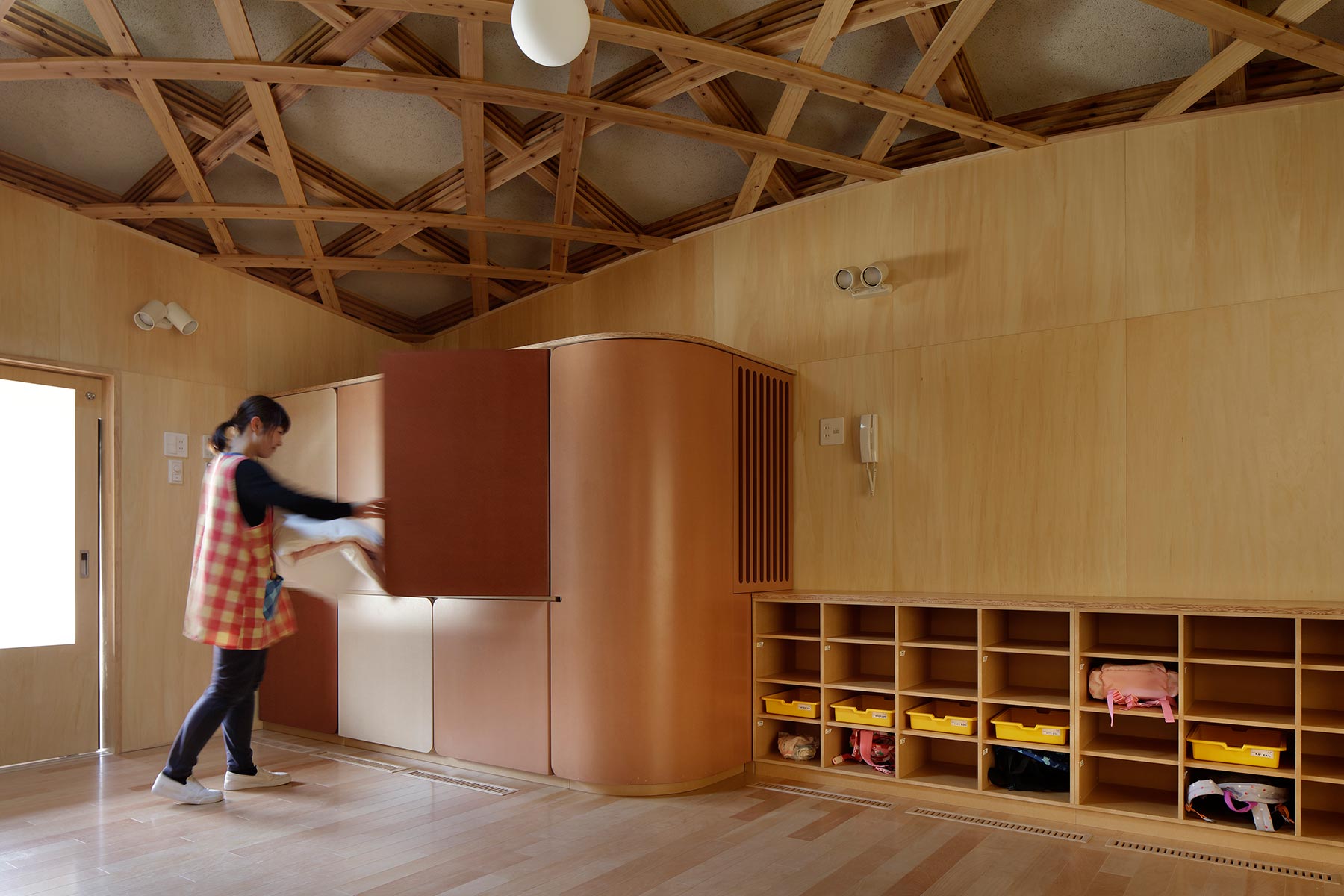 photo by Yuki Ohmoriu titleみどりの保育園date2011design藤森泰司アトリエarchitect石原健也 / デネフェス計画研究所contents子供用チェア,テーブル,ロッカー,おもちゃ棚,等の製作設置detail >> linkX -
