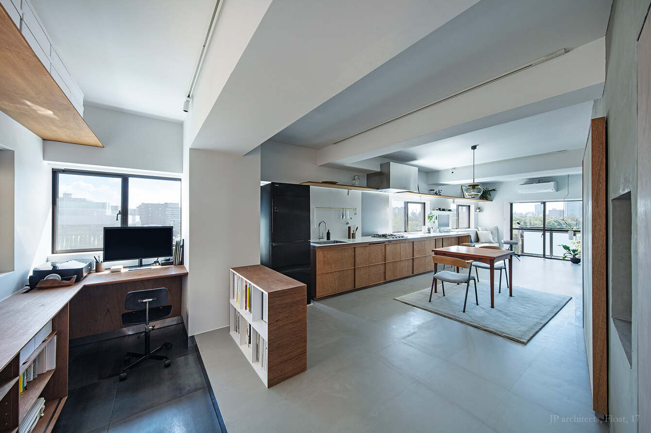 photo by Kenta Hasegawa titleFloatdate2020design松島潤平建築設計事務所 / JP architectscontentsキッチン、収納、建具、等の製作設置detail >> linkX -