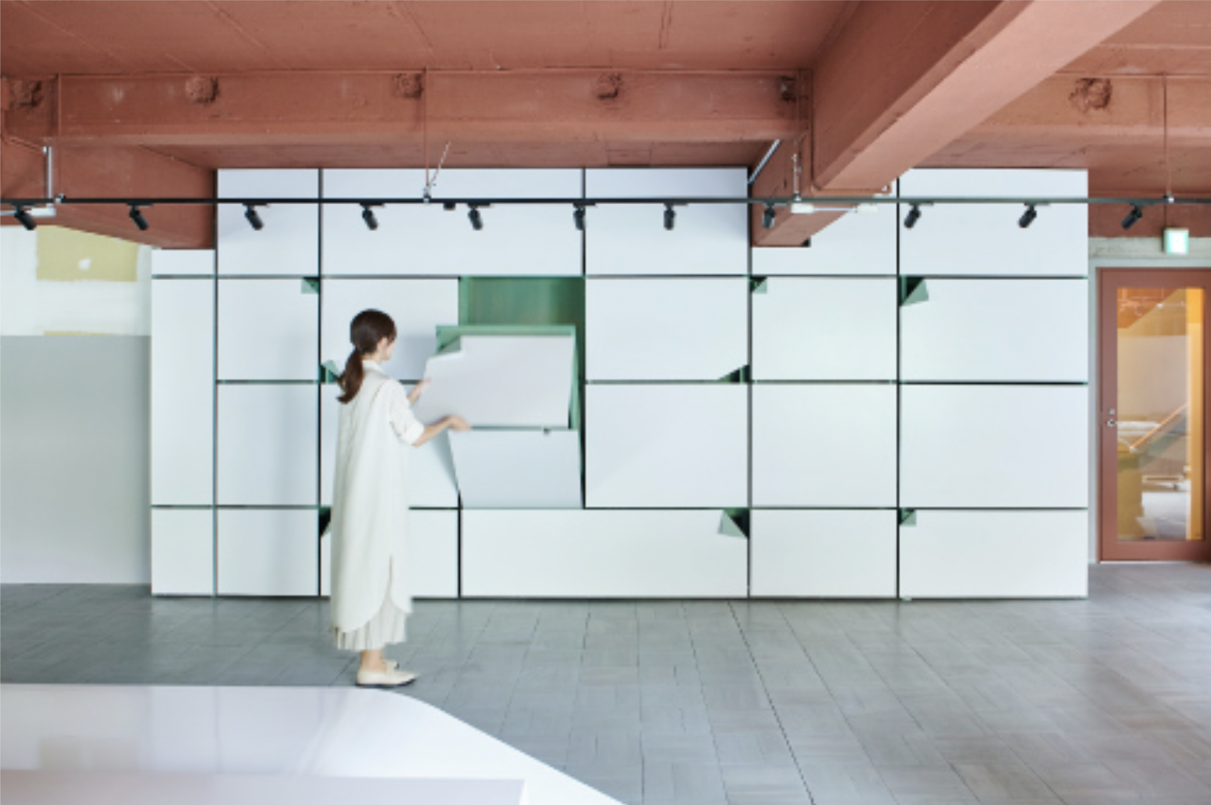 photo by new building office titlenew door next doordate2019designYusuke Komata new building officecontents壁面仕上げ、収納、建具等の製作設置detail >> linkX