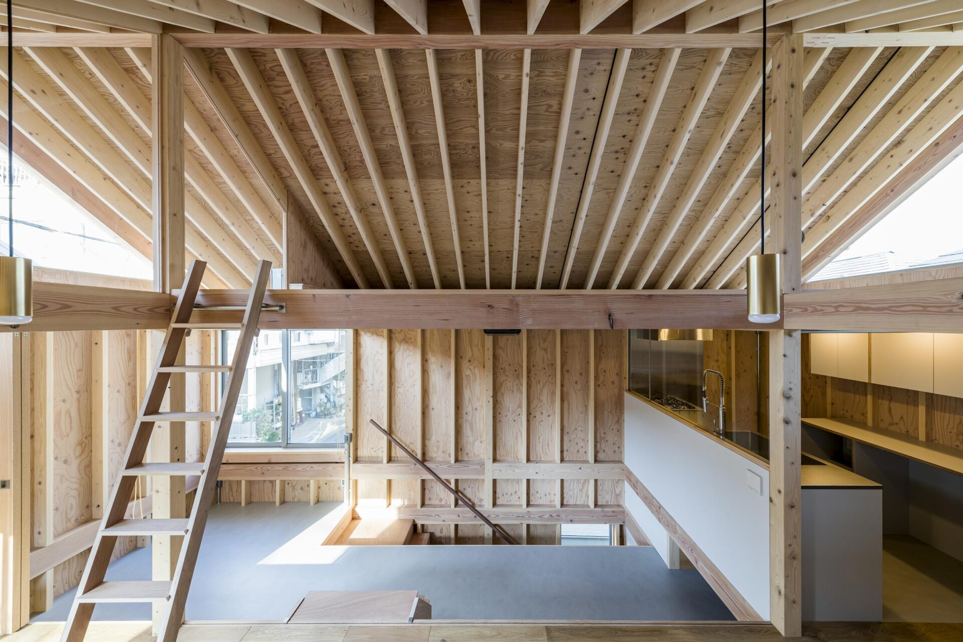 photo by Anna Nagai title二心柱の家date2022designAaatcontentsキッチン、階段収納、収納、テーブル、梯子などの製作設置detail >> linkX -