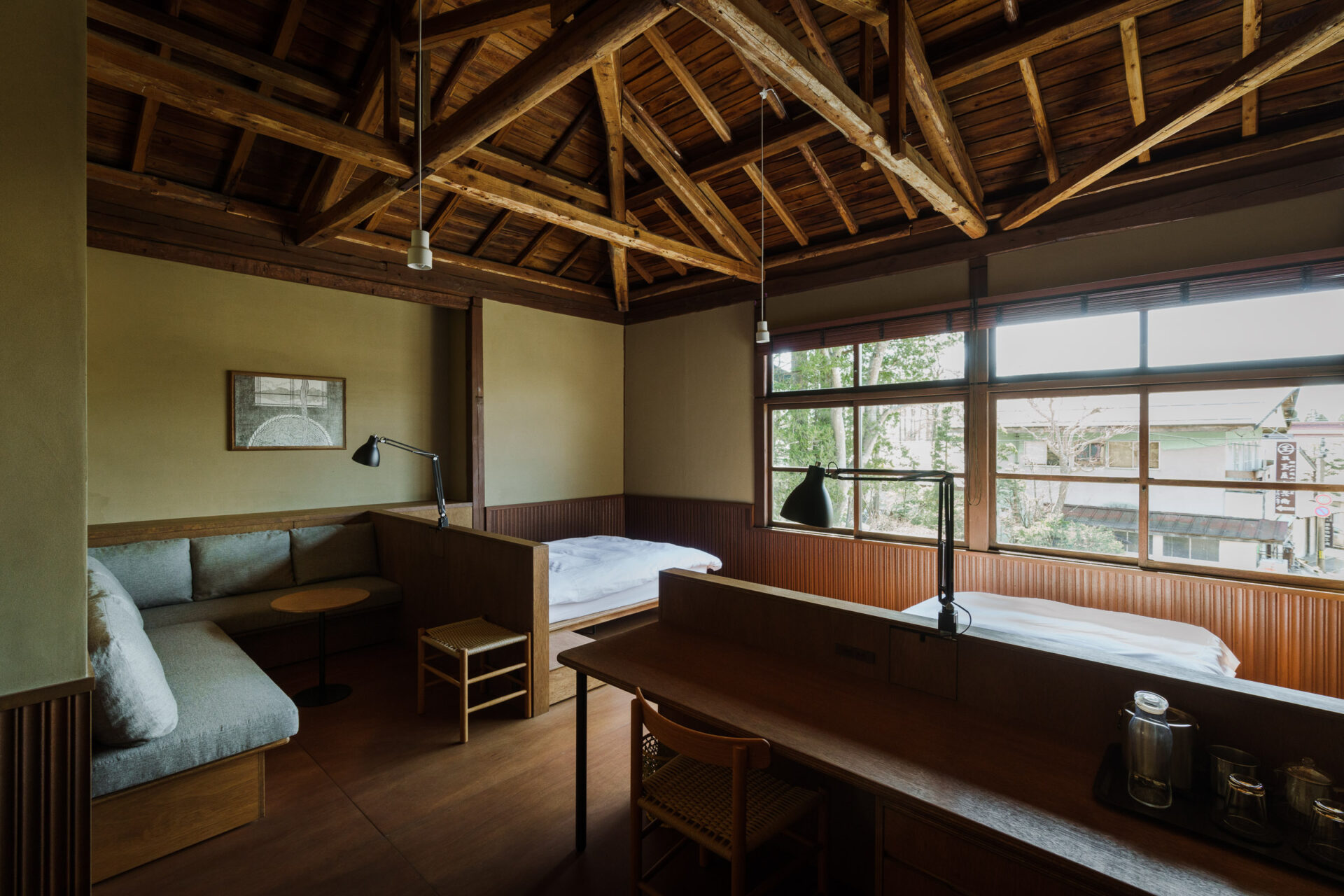 title湯河原惣湯date2021designLuftarchitect設計事務所岡昇平contents椅子、テーブル、台、ベンチなどの製作設置detail >> linkX -